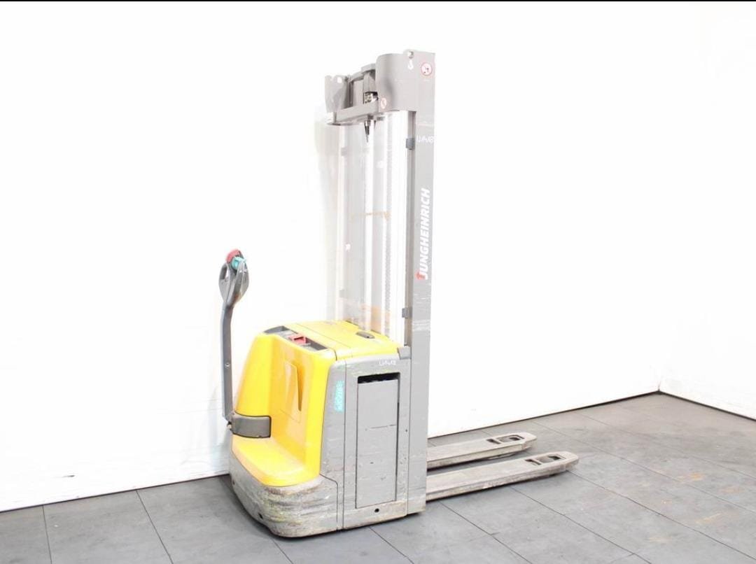 Apilador eléctrico marca Jungheinrich. Diseñado para facilitar el movimiento de cargas.